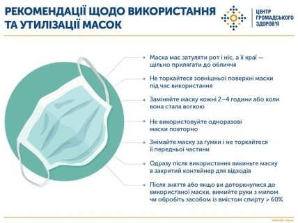 "Під час використання масок треба дотримуватися рекомендацій щодо їх надягання, носіння, знімання та утилізації", - йдеться у повідомленні.