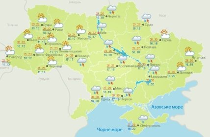 На півночі країни в усіх областях пройдуть короткочасні дощі з грозами. У Сумській і Чернігівській областях температура повітря вночі +16 ... + 18 °, удень +23 ... + 25 °.