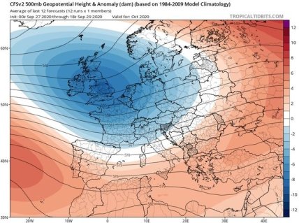 Відзначається, що на Європейському континенті буде домінувати поле зниженого тиску з центром мінімального геопотенціалу над Британськими островами. Імовірність арктичних або ультраполярніх вторгнень мінімальна.
