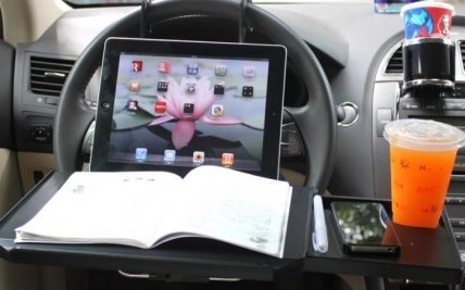 Непогана ідея для подарунка на день автомобіліста - столик, що кріпиться безпосередньо до керма.