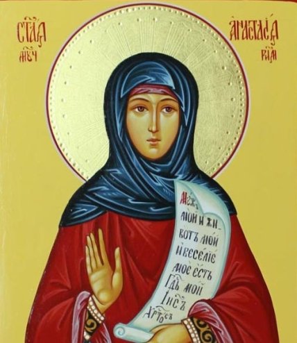 Анастасія народилася в знатній сім'ї, проте рано осиротіла. І її забрали на виховання в жіночу християнську громаду. Коли їй виповнився 21 рік, вона градоначальнику Прову. Вона сказала, що вірить в Ісуса Христа і відмовляється поклонятися язичницьким богам. За це дівчину виставили оголеною перед жителями міста. Анастасія перед народом почала викривати Прова в гріхах, за що була по-звірячому замучена і обезголовлена. Тіло її кинули на розтерзання диким тваринам.