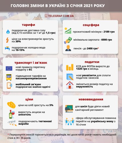 Підвищення мінімалки і зростання цін: що принесе українцям 2021 рік (інфографіка)