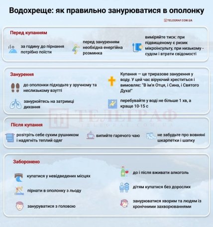 Також не рекомендується занурюватися в воду людям з ГРВІ та хронічними захворюваннями.