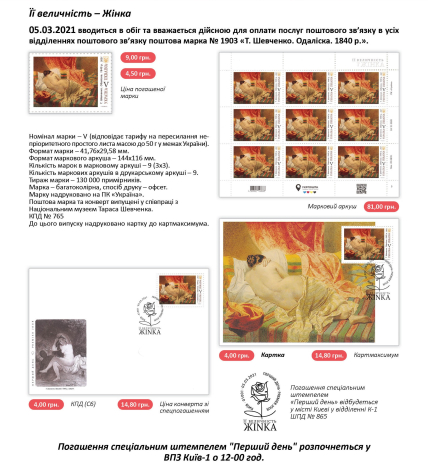 "Укрпошта" випускає до 8 березня спеціальну серію марок в стилі "ню" з серії "Її величність - жінка" з картинами Тараса Шевченка і Андрія Чебикіна.