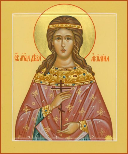 Акилина жила в Синопі при імператорі Максиміані. Коли в місті почалися гоніння на християн, її разом з дияконом Руфіном заточили в темницю за те, що ті сповідували православну віру. Там вони змогли перетворити на християнську віру 200 солдатів. Про це донесли правителеві, який пізніше наказав обезголовити Акилину, диякона і всіх новонавернених.