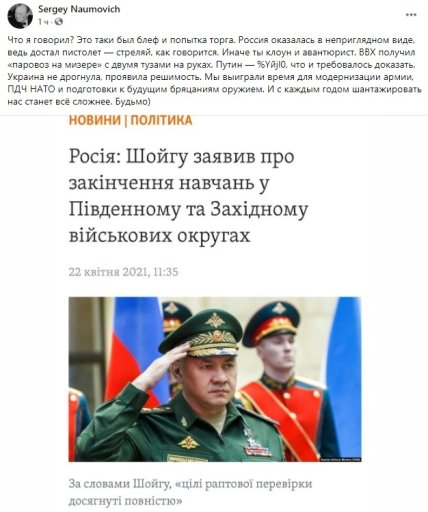 А ось правозахисник Сергій Наумович вважає, що ми виграли час для модернізації армії, союзу з НАТО і "підготовки до майбутніх брязкань зброєю".