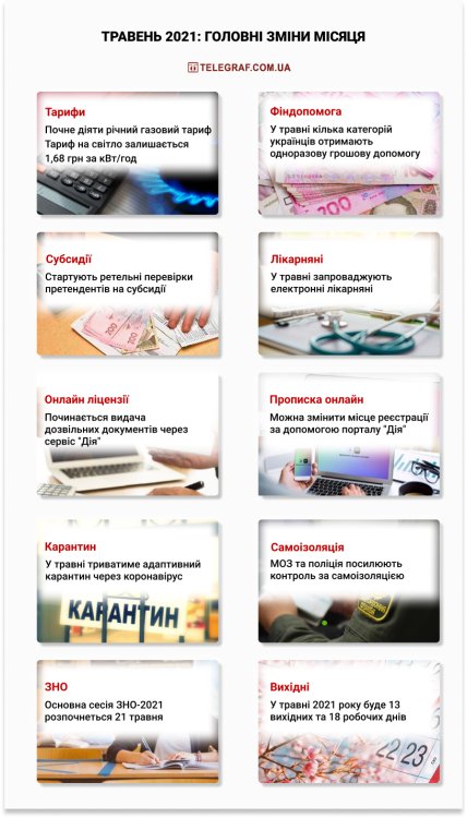 Річний газовий тариф, ЗНО та електронні лікарняні: що чекає на українців в травні (інфографіка)