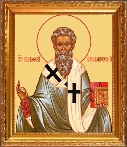 Тимофій Прусський жив в IV столітті. Він був єпископом міста Прусси. За свою духовну чистоту і праведний спосіб життя він отримав від Господа дар чудотворення і багатьох язичників навернув до віри Христової. Коли імператор Юліан Відступник почув про святого, то його до в'язниці і наказав його обезголовити.