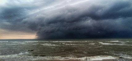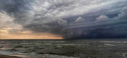 У курортному селищі Білосарайська коса, що на північному узбережжі Азовського моря, 22 липня зафіксували дивне небо, яке потемніло і опустилося просто до води перед грозою. Місцева жителька Олена Сагак встигла сфотографувати це природне явище перед початком шторму. Жінка поділилися фотографіями на своїй сторінці в Facebook.