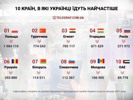 "Телеграф" підготував інфографіку - куди українці їдуть відпочивати та працювати у 2021 році.