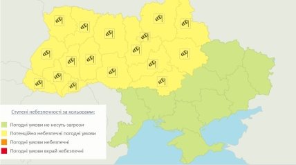Там очікується підвищений рівень небезпеки, грози, град і шквали силою до 15-20 метрів в секунду.
