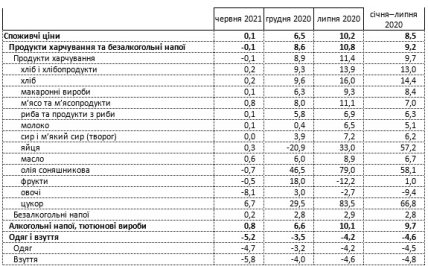 В Україні за липень 2021 року в порівнянні з попереднім місяцем подорожчали м'ясо, макарони, риба, яйця і вершкове масло. При цьому значно подешевшали одяг і взуття, що актуально для батьків школярів.