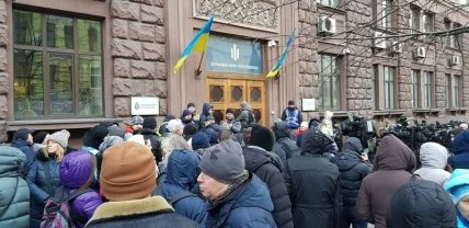 Як повідомляється, під відомством присутні депутати партії "Європейська солідарність". Також проходить мітинг прибічників і противників колишнього президента.