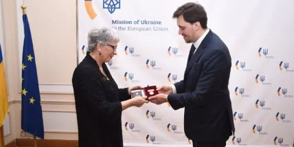 “Для мене честь особисто вручити високу державну нагороду відповідно до указу Президента – орден княгині Ольги I ступеня – віцепрезиденту Європейської народної партії (ЄНП) Сандрі Калнієте”, - зазначив Гончарук.