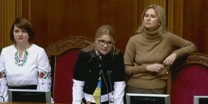 Тимошенко перед початком розгляду законопроєкту про ринок землі в другому читанні заблокувала місце спікера, зламала його мікрофон, поранивши при цьому палець.