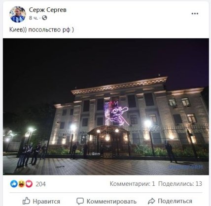 Користувачі Фейсбуку відзначили кумедні картинки на будівлі російського посольства.