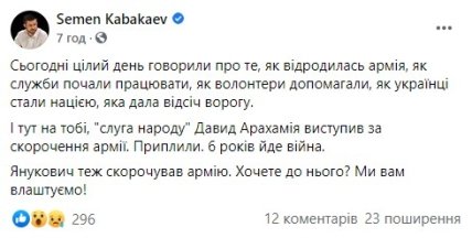 «Буде цікаво, якщо армія виступить за скорочення пана Давида», «Куди ж ще скорочувати?», «У нас що, немає інших структур, в яких можна скоротити бюджет проїдання?», - також пишуть в мережі.