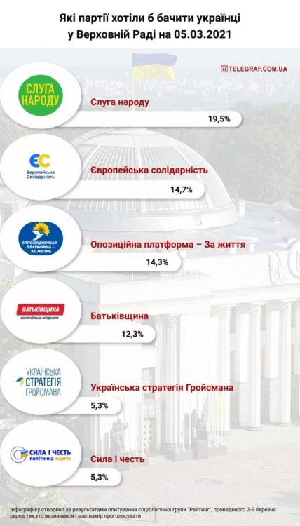 Відповідні результати опитування за даними на п'ятницю, 5 березня, оприлюднила соціологічна група "Рейтинг".