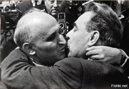 Це відверто контент із позначкою 18+ та не для тих, хто зараз їсть (і напої теж відставте). Партійні лідери СРСР мали звичку вітатися на офіційних зустрічах поцілунком в губи, і існує навіть добірка в стилі "Брєжнєва цілує в губи когось-там" та багато запитів у Google "Чому Брєжнєв цілував чоловіків".