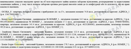 Тому зовсім не дивно, що за поданням слідчих судом було накладено арешт на нерухоме майно низки осіб, які підозрюються у причетності до вищезгаданих правопорушень. Серед арештованого майна (як випливає вже з іншого рішення Личаківскього районного суду, від 18.03.2024) – квартири і приватні будинки, а також ділянки які належать: власнику "Спортбанку" Андрію Савченку (на скріншоті нижче – ОСОБА_8), його партнеру Микиті Ізмайлову (міноритарний власник Parimatch), мажоритарній власниці Parimatch Катерині Білоруській, а також Ігорю Бокію, власнику платіжних сервісів 4bill та SettlePay, через які працював "Спортбанк".