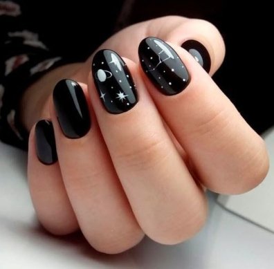 Манікюр з чорним лаком багато в чому відображає загальні тренди нейл-арту, але з поправкою на специфіку кольору.