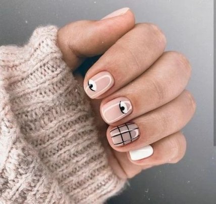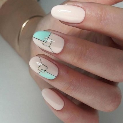 Дуже модним рішенням стало виконання модного комбінованого нейл-дизайну, що містить як малюночки, так і смужки. Ніжний манікюр в такому модному дизайні можна отримати відбитками фольги, дрібними шматочками фольги, а також дзеркальними стрічками. При цьому дуже важливо використовувати світлі відтінки покриттів, наприклад, блакитний і кремовий, щоб отримати як раз-таки модний ніжний дизайн манікюру.