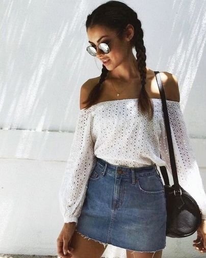 В тренді топи з відкритими плечима, вони теж добре гармонують з міні. Але важливо пам'ятати, що таке вбрання годиться тільки для неофіційних зустрічей і заходів.