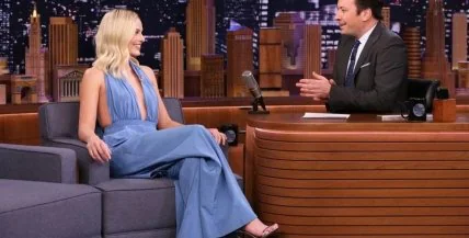 Вечірнє шоу The Tonight Show Starring Jimmy Fallon за участю кіноактриси відбулось 4 лютого. Цього ж дня Роббі побувала на ранковому шоу Good Morning America, представила фільм на нью-йоркському показі, а завершила день на зйомках вечірньої програми. На ефір зірка прийшла у блакитному комбінезоні з глибоким декольте та вирізом на спині. Широкі штанини і дві смужки тканини, які прикривали груди актриси та формувались у великий бант на плечах, виглядали доволі сексуально та водночас стримано.