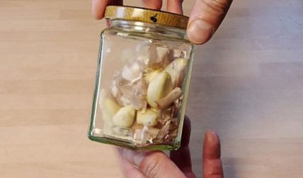 Ні для кого не секрет, що почистити часник буває досить проблематично, особливо, коли зубчики настільки дрібні, що в пору і зовсім відмовитися від цієї затії. Але перш ніж почати нервувати, кидаючи почате, краще скористатися простим, але геніальним радою. Візьміть скляну банку (або невелику каструлю з кришкою), складіть в неї часникові зубочки, закрийте кришкою або прикрийте щільно долонею, і гарненько потрясіть. Подібний метод допоможе вам досить швидко позбутися від більшої частини настільки ненависної лушпиння.