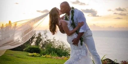 Дуейн, або як його ще називають "Скала", опублікував пару красномовних фотографій, на яких з'явився зі своєю коханою в весільних образах. 47-річний актор і 34-річна співачка обмінялися весільними клятвами на мальовничому пагорбі Гаваїв.