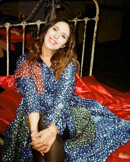 На атмосферних кадрах зірка позує сидячи у вбранні від знаменитого українського дизайнера Івана Фролова, який славиться на теренах вітчизняної модної індустрії своїми провокативними творчими рішеннями. На співачці об'ємна сукня з легкого матеріалу в анімалістичний принт. Образ поєднав насичені сині та блакитні кольори.