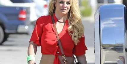 Брітні, одягнена в короткий червоний топ та білі шорти, прямувала в студію засмаги. З-під топа чітко виднілися її соски. Також не можна не звернути уваги на те, що співачка йшла в спеціальному медичному черевику, - очевидно, вона десь травмувала ногу, тож тепер змушена буде носити його деякий час.