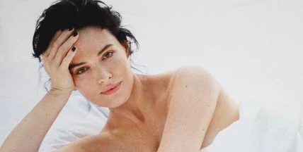 Сексуальна Даша Астаф'єва лежить на ліжку та дивиться у вікно