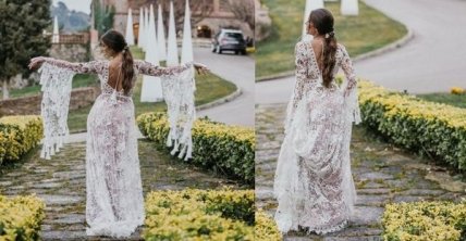 На опублікованих знімках обраниця "холостяка" Макса з'явилася в розкішній напівпрозорій білій сукні з глибоким декольте і вирізом на спині. Даша на фотографіях має розкішний вигляд, їй дуже пасує такий ніжний образ.