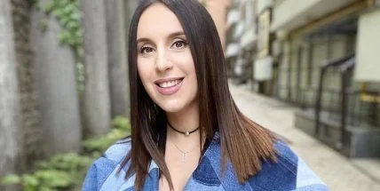 Для чуттєвої фотосесії у білосніжній кімнаті Джамала обрала картату сукню у синьому кольорі. Вона розстебнула її та показала оголений вагітний животик. Волосся вклала рівно, а на обличчі зробила ніжний макіяж із чорними стрілками на повіках та коричневою помадою на губах.