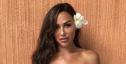 Ана вибрала поєднанний рожевий купальник, який прикрашає чорно-рожевий пояс. Варто зазначити, що купальник зроблений з дуже глибоким декольте, яке ідеально підтримує її пишні груди.