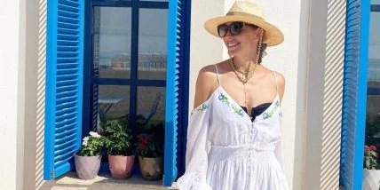 Осадча продемонструвала стильний пляжний образ. Катерина позувала в білому сарафані з вишивкою. Своє вбрання телезірка доповнила капелюхом, прикрашеним ланцюговим ремінцем від українського бренду Ruslan Baginskiy, сонцезахисними окулярами та модною солом’яною сумкою від Jacquemus, вартістю 600 доларів.