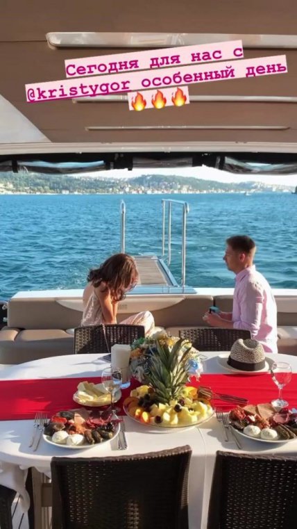 35-річний актор і ведучий 19 серпня опублікував фото з нареченою - пара на яхті в Стамбулі радіє і ніжно обіймається.