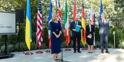 Перша леді України з'явилася на заході поряд з прем'єр-міністром Денисом Шмигаль, міністром закордонних справ Дмитром Кулебою і послами країн Європи.