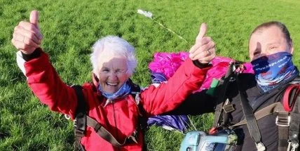 Відчайдушна пенсіонерка відзначила 90-річчя стрибком з парашутом (Відео)