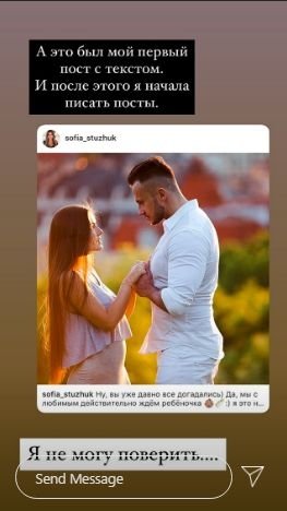 Фото, на якому Софія і Дмитро оголошують про поповнення в родині. Дівчина була вагітна першою дитиною, сином Давидом.