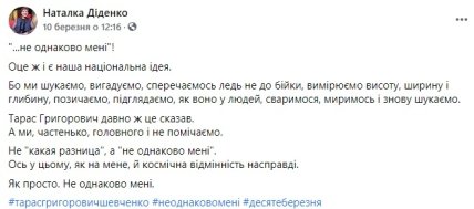 – Коли я, наприклад, іду гуляти в парк, то проходжу там різні місцини. Є дуже красиві озера з птахами і качками, або тінисті ділянки, або шикарні дерева. А є – смітники, галасливі будки, в яких продається кава з водою, як мені здається, сумнівної якості. Я просто не буду голими руками лізти в смітник і дивитися, перебирати, що там повикидали. Мені це нецікаво. А краще буду дивитися на пташок, сяду на лавку, пройдуся алеєю. Тому й в онлайн сварках, не хочу казати того слова, яке прийнято в соцмережах на букву "с" (сміється, - ред.), не беру участі.