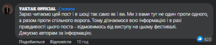 У коментарях до посту відмітилася частина артистів, які були дуже здивовані цим. Гурт "Океан Ельзи" написав: