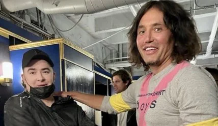 Артист Андрій Данилко (сценічний образ – Вєрка Сердючка) потрапив у черговий "зашквар", пише блогер Олексій Голобуцький. Він опублікував фото, на якому Данилко перебуває в компанії російського шоумена Рустама Солнцева (справжнє його прізвище – Калганов). Першим ці знімки поширив сам Солнцев, називаючи Данилка у підписі до них "прекрасним".