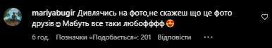 "Ну що ви таке кажете — це справжня любов на фотографіях", "Дивлячись на фото, не скажеш що це фото друзів. Мабуть, все-таки любофффф", "Ви аж занадто світитесь від тої дружби, не вірю", — пишуть у коментарях до світлин.