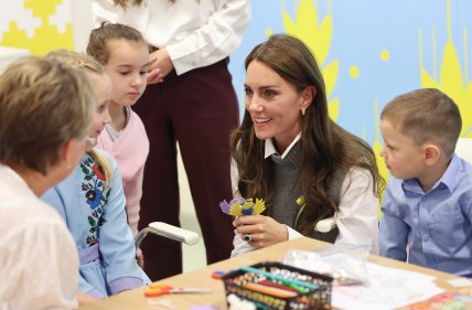 З синьо-жовтою стрічкою на грудях: Кейт Міддлтон поспілкувалася з українськими біженцями (фото)