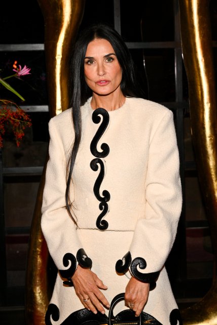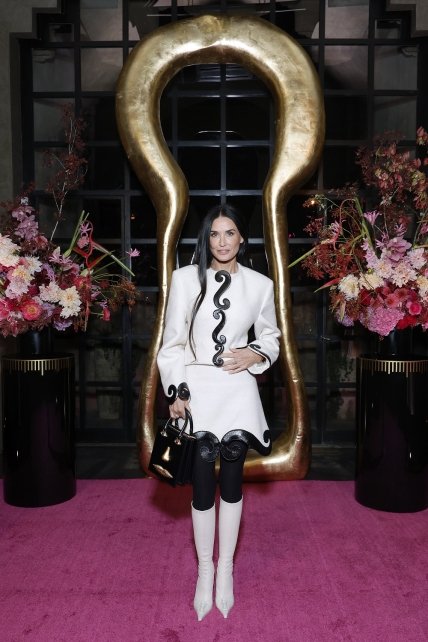Нестаріюча Демі була на зірковому заході в чорно-білому ансамблі від того ж Schiaparelli, який складався з вовняного светра та спідниці з принтом шкіряного оздоблення у вигляді літери S, що доповнює манжети та поділ. Вона поєднала вбрання з високими чоботями на шпильці до коліна та парою чорних колготок.