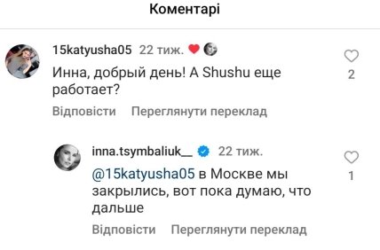 Цимбалюк – засновник та дизайнер бренду одягу. Проте на сторінці її компанії остання публікація датована 4 лютого 2022 року. До речі, під фотографією Інни у костюмі власного виробництва багато негативних коментарів українців, які обурені мовчанням зірки про російський напад. В одному із коментарів модель підтвердила, що московський магазин закрито.
