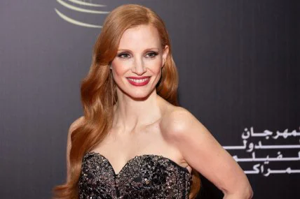 46-річна Честейн зачарувала присутніх на малолюдному заході образом у картатому костюмі темного кольору та шкіряних туфлях на підборах чорного кольору. Під піджак актриса одягла чорну водолазку, а своє руде волосся розпустила.