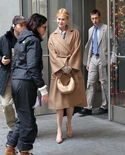 У трендовому пальті: 56-річну Ніколь Кідман застали на зйомках нового фільму (фото)